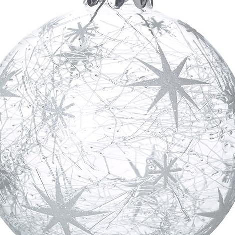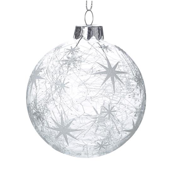 CLEAR & SPUN GLASS WHITE STARS BAUBLE