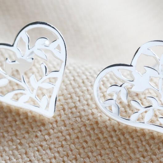 FAMILY TREE HEART STUD EARRINGS IN STERLING SILVER