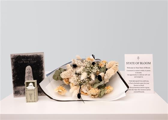 Celebrate Halloween as a moment of renewal, friendship and love with My Best Boo an elegant, gift-ready set from In Bloom’s State of Bloom collection. Each set includes an East of India porcelain ghost keepsake (choose either “Love you boo” or “Always here for you boo”), a hand-tied dried bouquet made from premium blooms and meadow grasses, and a simple card for your message.