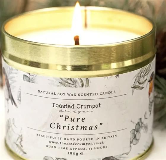 Pure Christmas (Robin & Eucalyptus Pure) Candle in a Matt Gold Tin