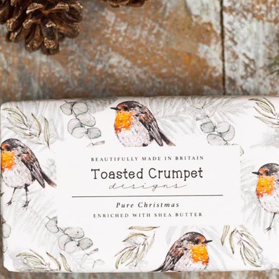 Discover the charm of British nature with Toasted Crumpet's Pure Christmas Soap from the Robin Collection. This large 190g bar of pure vegetable soap offers a luxurious cleansing experience. Inspired by the stunning countryside, it brings the beauty of the outdoors into your home. Perfect for those who appreciate the allure of natural elements, this soap is not just a daily essential but an indulgence. Enjoy the richness of this vegetable soap bar and let it transport you to serene parklands and woodlands of Surrey.