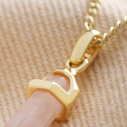 ROSE QUARTZ CRYSTAL POINT PENDANT NECKLACE IN GOLD