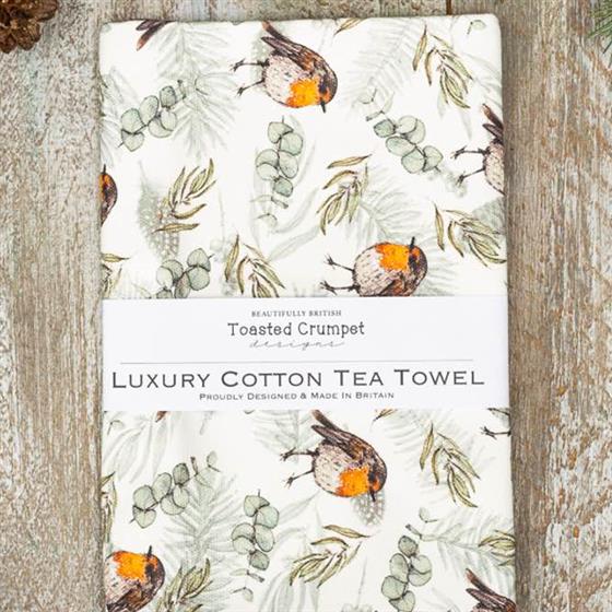 Immerse yourself in the beauty of nature with Toasted Crumpet's Robin & Eucalyptus (Pure) Tea Towel. This essential kitchen item, inspired by the stunning British countryside, is a testament to our founder's love for the outdoors. While the tea towel is a simple household item, its design is anything but ordinary. This product reflects the brand's commitment to bring the beauty of nature indoors. Now, you can enjoy the charm of the British countryside, right in your kitchen.
