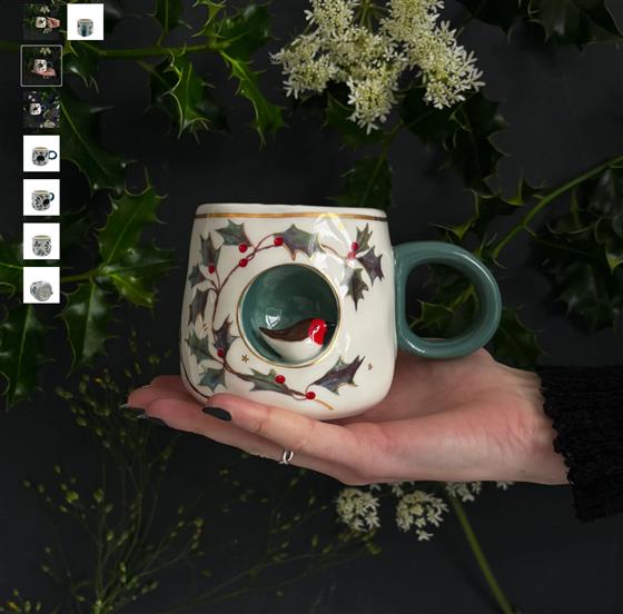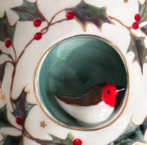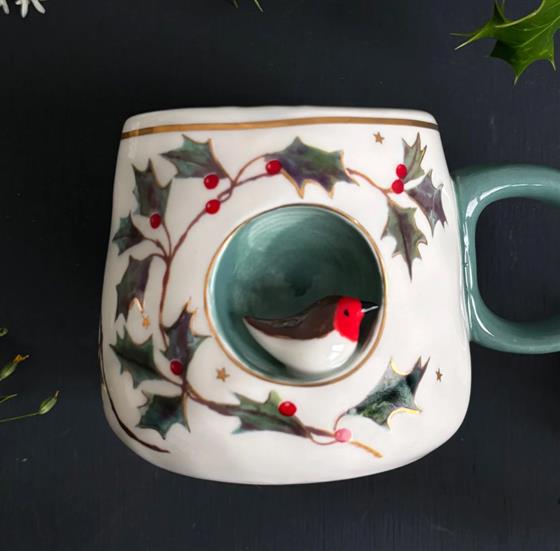 Let your morning coffee feel like a walk through a frosted English garden with this beautifully detailed porcelain cup. Wrapped in soft watercolour illustrations of twisting holly leaves and berries, it features a tiny 3D robin nestled into a snug little nook — the sweetest seasonal surprise.