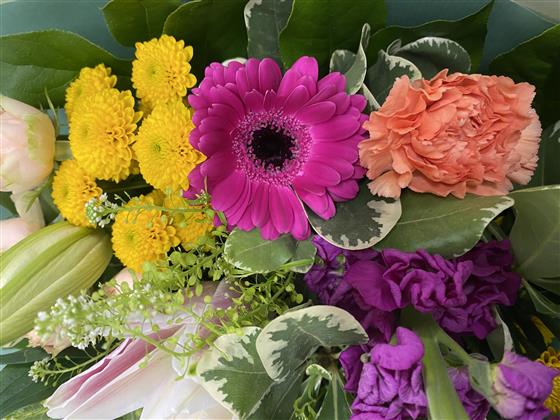 We choose the best stems available each day, so the exact flowers will vary, but the overall feel stays the same colourful, relaxed, and thoughtfully put together.