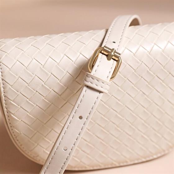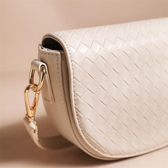 WOVEN VEGAN LEATHER CROSSBODY BAG IN BEIGE